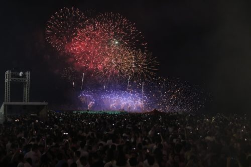 Uma multidão de pessoas fez, em uníssono, a tradicional contagem regressiva da virada do ano noLer mais
