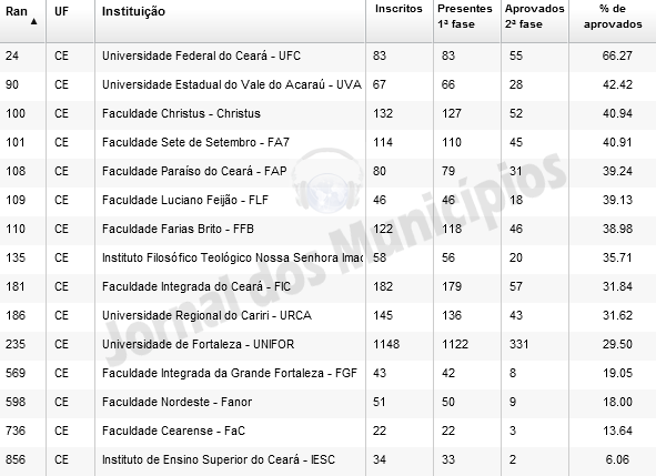 Nenhuma das 865 faculdades de direito representadas pelos seus bacharéis no último Exame de Ordem UnificadoLer mais