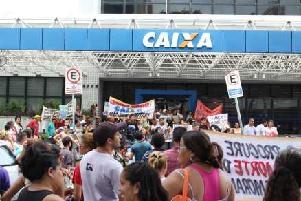 Dezenas de manifestantes protestaram, ontem, contra uma ação de reintegração de posse por parte da CaixaLer mais