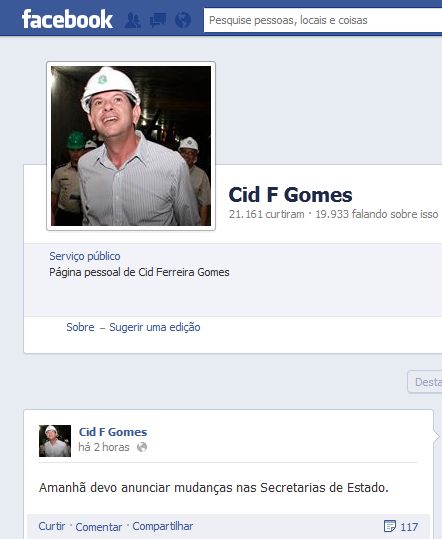 O Governador Cid Gomes anunciou, no início da noite desta quinta-feira, 5, em sua fan pageLer mais