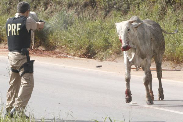 Imagem divulgada na internet mostra arma apontada para boi, que supostamente foi morto a tiros. UmaLer mais