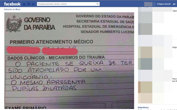 Um suposto boletim de emergência (BE) do Hospital de Emergência e Trauma de João Pessoa se tornou motivoLer mais