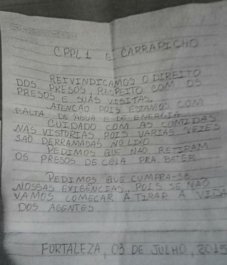 Uma carta, supostamente escrita por detentos, reivindica melhorias na Unidade Penitenciária Francisco Adalberto de Barros LealLer mais