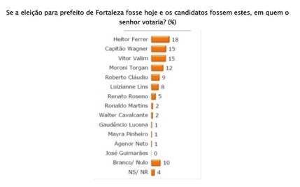 O atual prefeito Roberto Cláudio ocupa a quinta colocação na intenção de voto e soma oLer mais