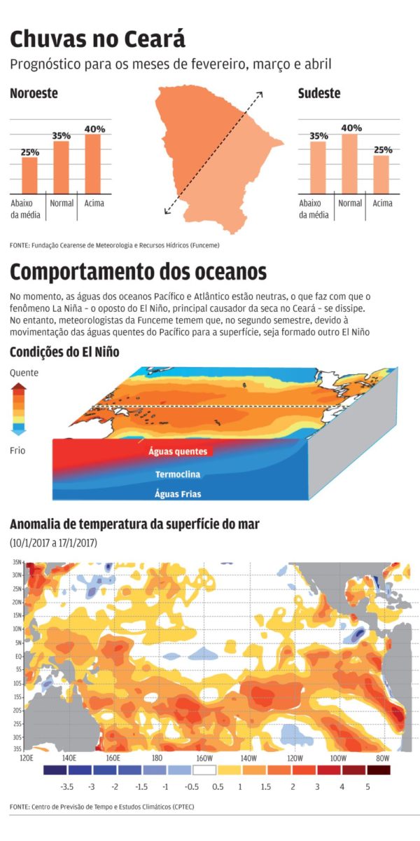 Prognóstico foi divulgado ontem pela Funceme. Simultaneamente, são 30% de chances de chover abaixo da médiaLer mais