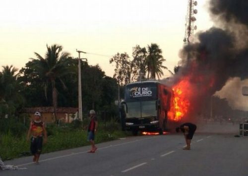 Ônibus da banda Pé de Ouro pega fogo em Paracuru