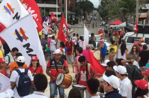 Manifestantes fizeram ato unificado, com a participação de centrais sindicais, na tarde desta segunda-feira, 1º, noLer mais
