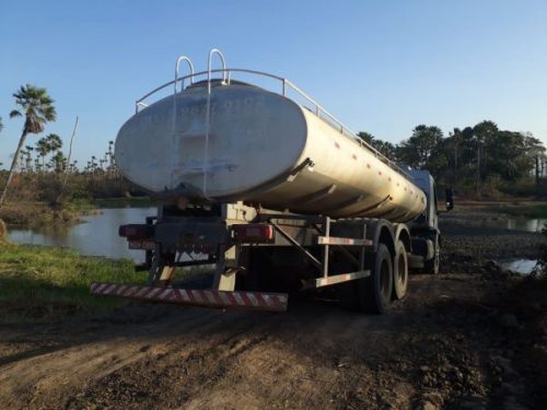 PM e Funai flagram carro-pipa tirando água em área indígena em Caucaia