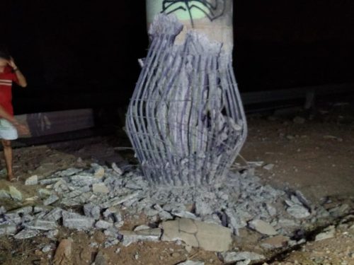Uma das colunas do viaduto teve a estrutura danificada e parte dos ferros ficaram expostos. PolíciaLer mais