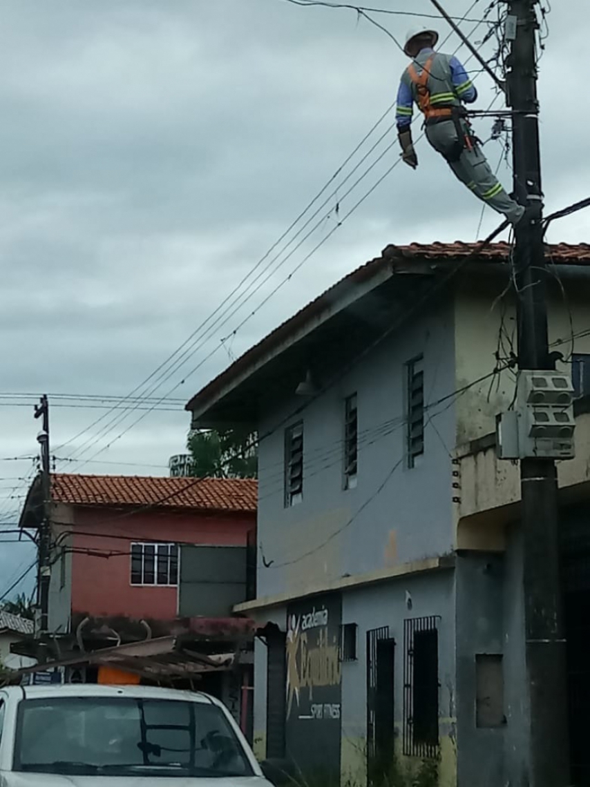 Após ter energia cortada, homem tira a escada e deixa técnico pendurado no poste