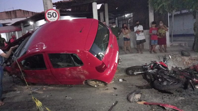 Motorista em alta velocidade colide com casal de idosos em moto e morre em Fortaleza