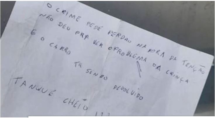 Bilhete com pedido de desculpas foi deixado no veículo. Cadeira usada por menino de 4 anos,Ler mais