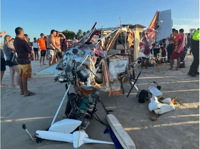 Vídeos enviados ao g1 mostram destroços da aeronave na faixa de areia da praia e váriasLer mais
