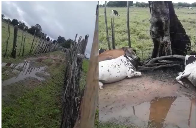 Os animais estavam embaixo de uma árvore, próximo a uma cerca de arame farpado. Um raioLer mais