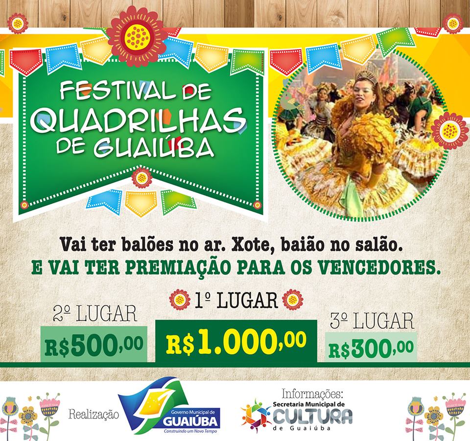 Nos dias 03 e 04 de julho, às 19h, acontece o Festival de Quadrilhas de GuaiúbaLer mais