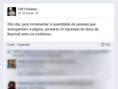 Para movimentar os comentários na sua fanpage pessoal no Facebook, o governador Cid Gomes (PSB) anunciouLer mais