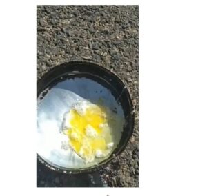 “Hoje o sol estava muito quente e decidi fazer o teste e realmente o ovo fritou. Eu havia extraído um dente e não consegui nem ficar no sol por causa do calor, mas deixei o óleo esquentando na frigideira sobre o asfalto e fui conversar com meus amigos e 20 minutos depois joguei o ovo e aconteceu o que está no vídeo, ele começou a fritar”, detalha.