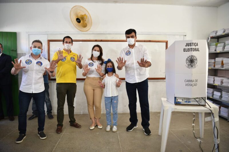 O candidato à reeleição Naumi Amorim (PSD) votou, na manhã deste domingo (29), na Escola deLer mais