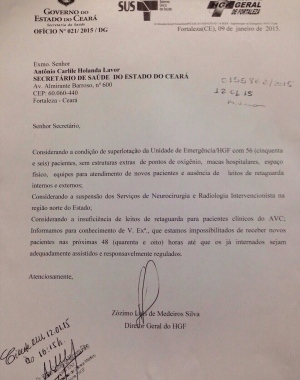 Na tarde desta segunda-feira, o diretor Hospital Geral de Fortaleza, Zózimo Luís de Medeiros Silva, expediu umLer mais