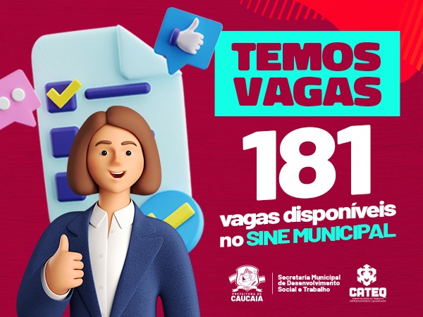 A Secretaria de Desenvolvimento Social e Trabalho (SDST), por meio do SINE, disponibiliza 181 novas vagasLer mais