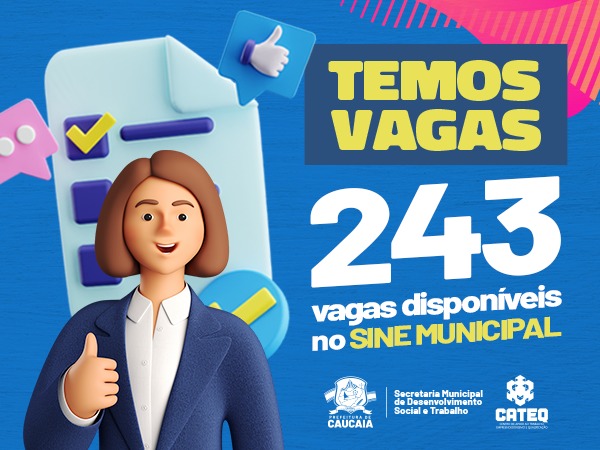 A Secretaria de Desenvolvimento Social e Trabalho (SDST), por meio do SINE, disponibiliza 243 novas vagasLer mais